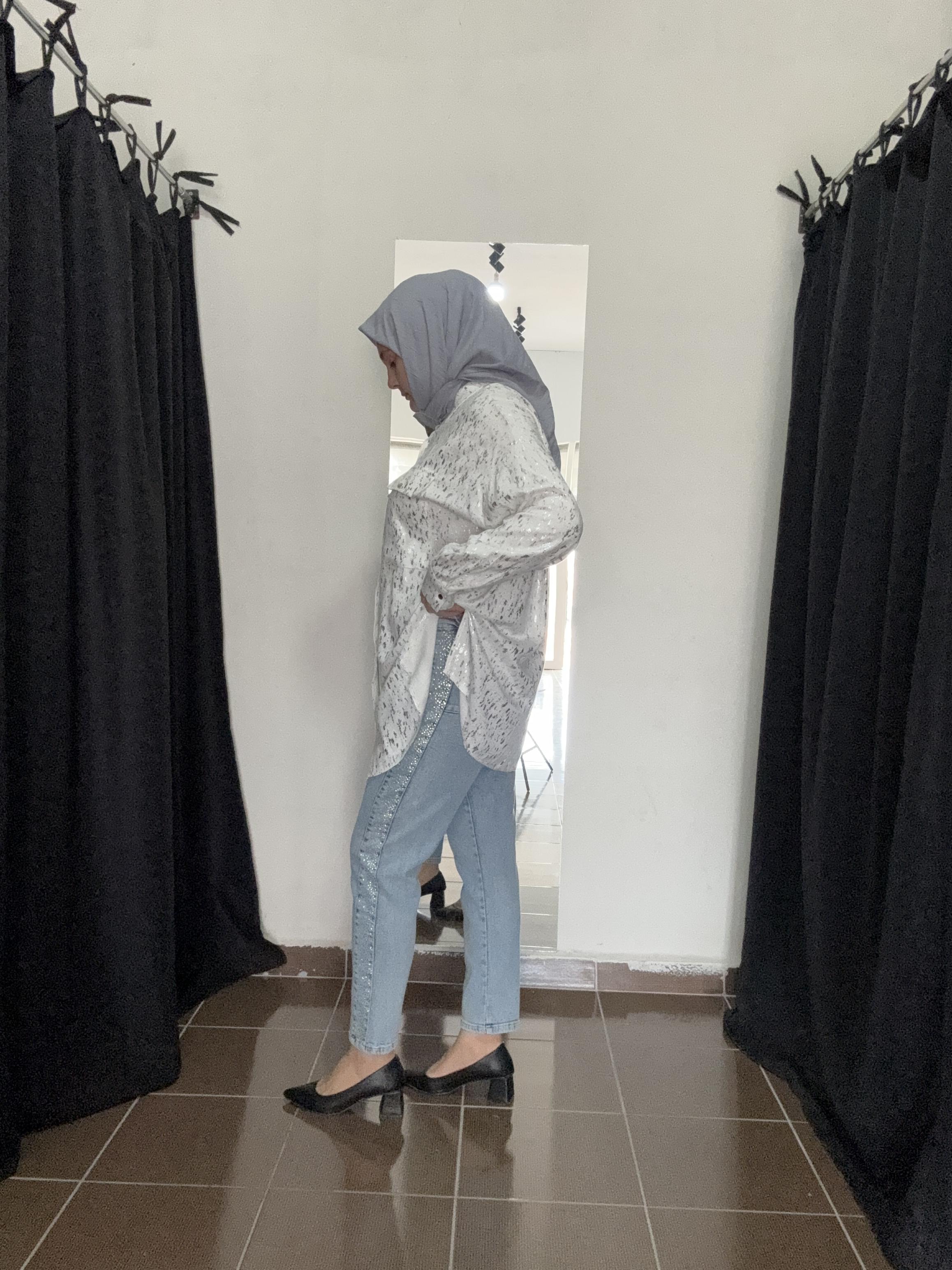 Yanları taşlı açık mavi pantolon